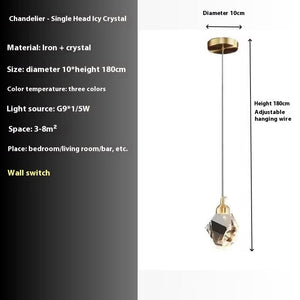All Copper Light Luxury Crystal Chandelier Modern Minimalist Restaurant Three-Head Chandelier