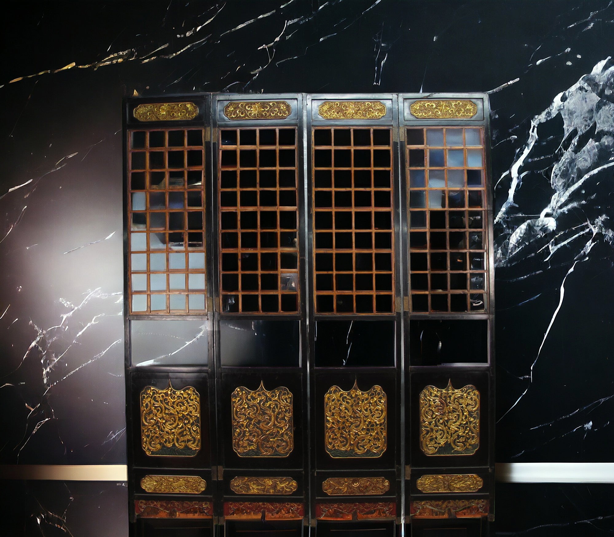 This exquisite panel set showcases the hand-carved and gilded dragons on both front and back side. On the one side, it shows vividly two majestic dragons playing a ball in the sky. 双龙戏珠 (double dragon play ball) is a prominent art form portrayed by the artists in painting, carving, and building. On the other side, it shows intricate designed multi dragons, gorgeous carving gilding. With their fine craftsmanship and attention to detail, these room dividers are a true testament to the artistry of Chinese artisans. It will be an extraordinary wall arts or room divider by attaching light fabric of your own choice.