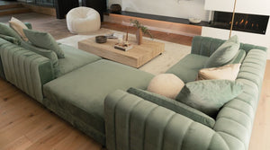 Open your senses to the sculptural beauty of the Ashley Multi Sectional Sofa— a masterpiece of modern comfort and design. Defined by its smooth channel tufting, sumptuous upholstery, and gracefully contoured form, the Ashley exudes understated luxury from every angle.