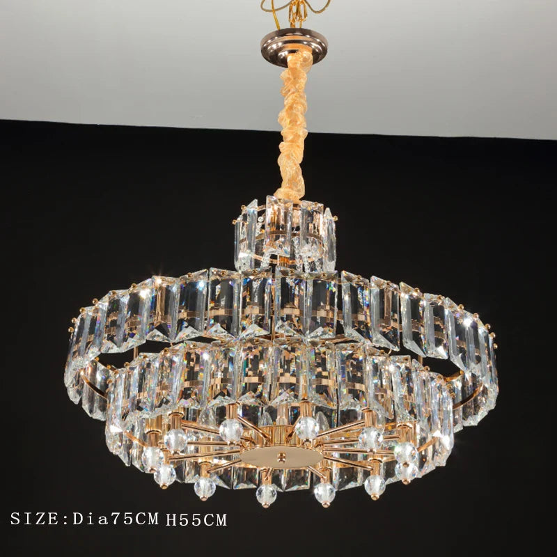 Contemporary LED Crystal Chandelier - Illuminate Your Living Room with Elegant Round and Rectangle Golden Indoor Lighting