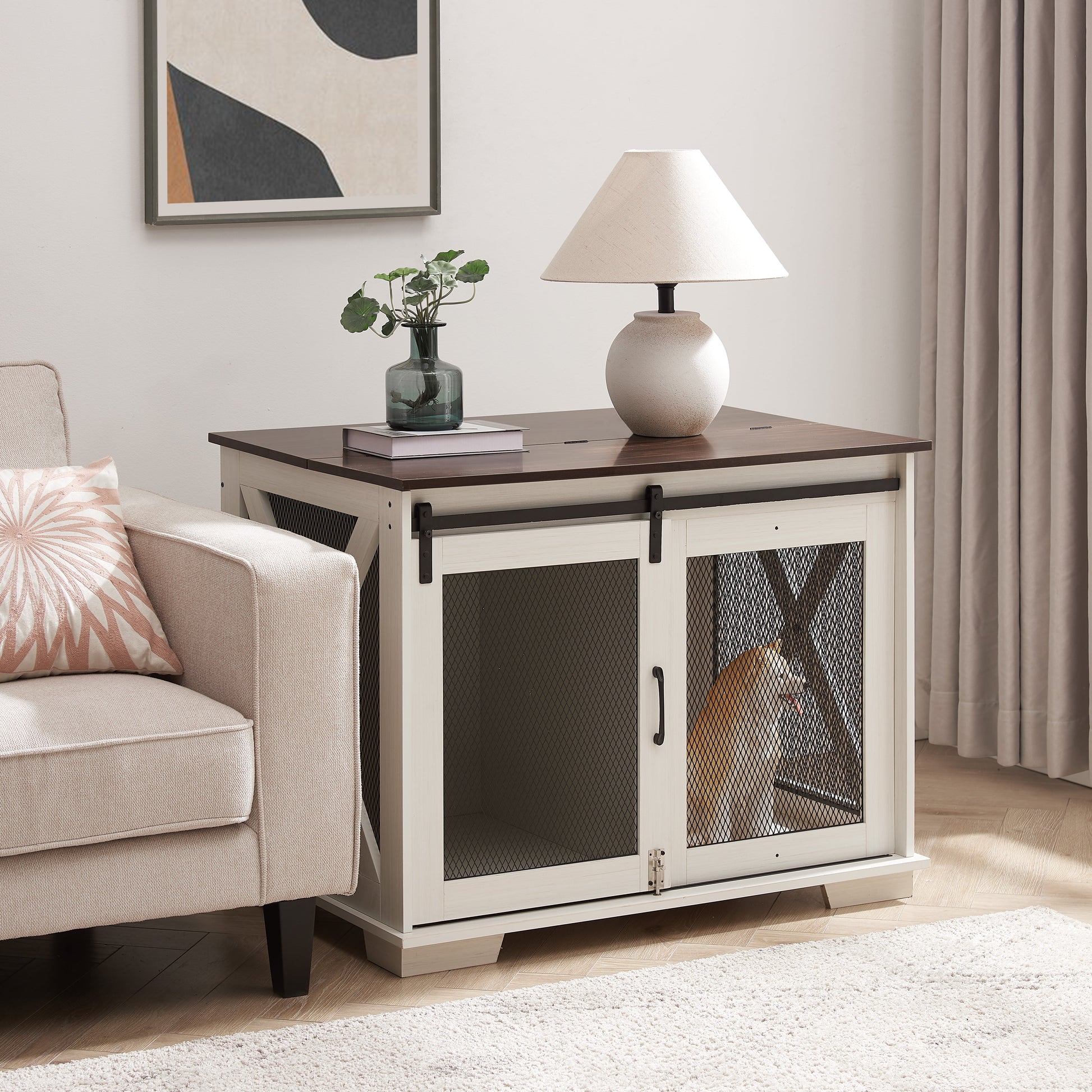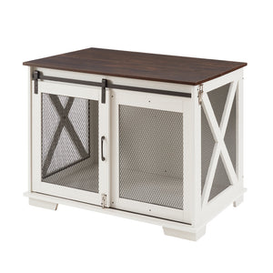 Farm kennel Flat noodles furniture with sliding barn door, farm wooden kennel end table, dog house with removable partition