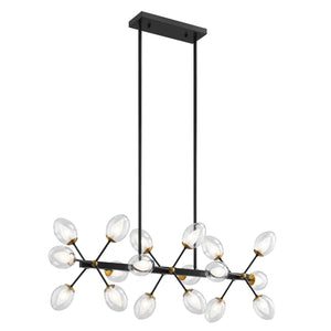 The Nodus Crystal Rectangular Chandelier has the ability to make any space in your home look chic, elegant and contemporary. With 18 lights set in a linear design, these clear glasses with frosted glass inserts will shine like petals of a beautiful flower. The black and gold finish give this chandelier a luxurious touch while providing a modern look. This fixture is great for high ceilings, and can be used as the perfect statement piece over kitchen islands or entryways. With 12 feet of adjustable wire, you'll have no problem installing it wherever you feel would benefit from its beauty. If you're an interior designer looking for something that's high-end and impressive year after year, you can't go wrong with the Nodus Crystal Rectangular Chandelier.