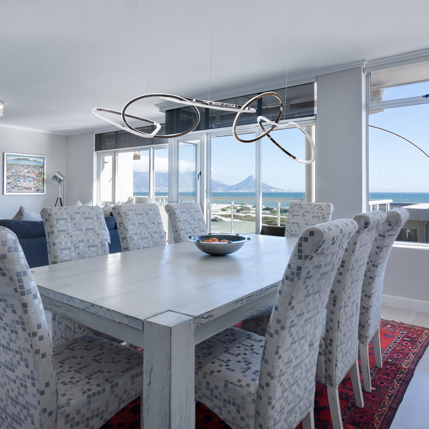 The Finesse Decor's Seoul LED 5 Hoops Rectangular Chandelier is the perfect chandelier to add over a dining table, kitchen island or entry way. This Finesse Decor piece is made from high end aluminum and silicon and iron.