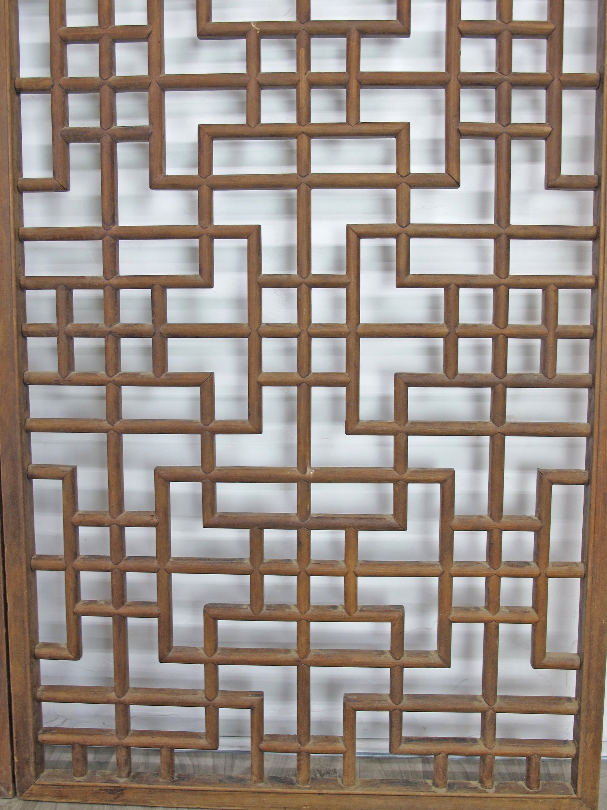 This screen panel can be excellent widow or wall decoration arts. The latticed screen allows air to circulate nicely and creates a mesmerizing visual effect. With its beautiful open lattice pattern and carving and rich wood texture, this panel screen is piece of art in any room and will last for generations to admire. This lattice panels balance out lines and ornament. Beautiful display wall arts, or decorative windows, or mirror frame. A pair is available.