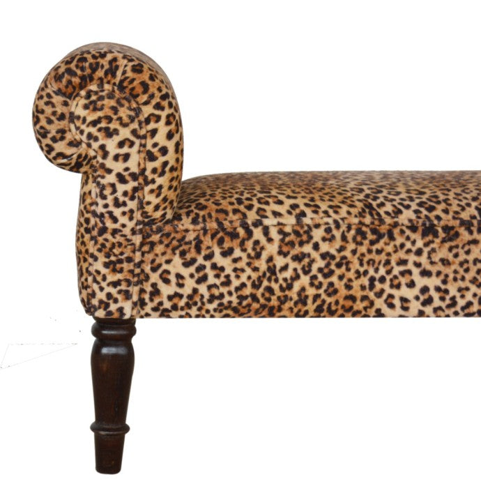 This lovely piece of furniture is ideal for a hallway, end of the bed, or simply any living area in your home which is also ideal for extra seating. It is upholstered in a luxurious leopard animal print cotton velvet featuring turned legs constructed from 100% solid mango wood in a walnut finish. This bench will add a pop of color to any room and serve handy all over the home, available in many different colors.