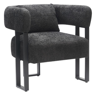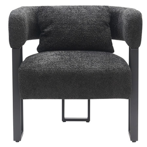 The perfect blend of cozy texture and modern design with the Marni Accent Chair. This contemporary piece features a deeply inviting seat, expertly upholstered in soft, high-pile bouclé fabric for a touch of luxury. The clean lines of its black metal frame provide a striking contrast, creating a lightweight and elegant silhouette.