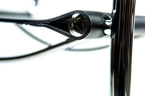 Material: Tubular chrome armchair with a black hide leather seat and back with padded arms. Fully assembled.