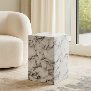 The Milano Accent Table combines industrial durability with refined aesthetics. Built from fiber-reinforced engineered cementitious composite, this commercial-grade piece withstands demanding environments with its heat, stain, and scratch-resistant finish. The sophisticated Bulgari white marble surface delivers a polished, contemporary look while maintaining practical functionality. Its robust construction supports substantial weight, making it ideal for high-traffic spaces like lobbies, reception areas, or modern living rooms. The seamless matte coating ensures effortless maintenance and longevity, offering a premium solution for those seeking furniture that performs as beautifully as it appears.