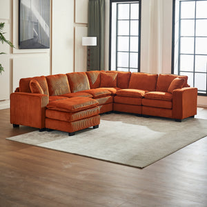 Modern U Shaped 6-seat Sectional Sofa Couch with one Ottoman and three toss pillows ,Modular Sofa for Living Room,Corduroy sofa
