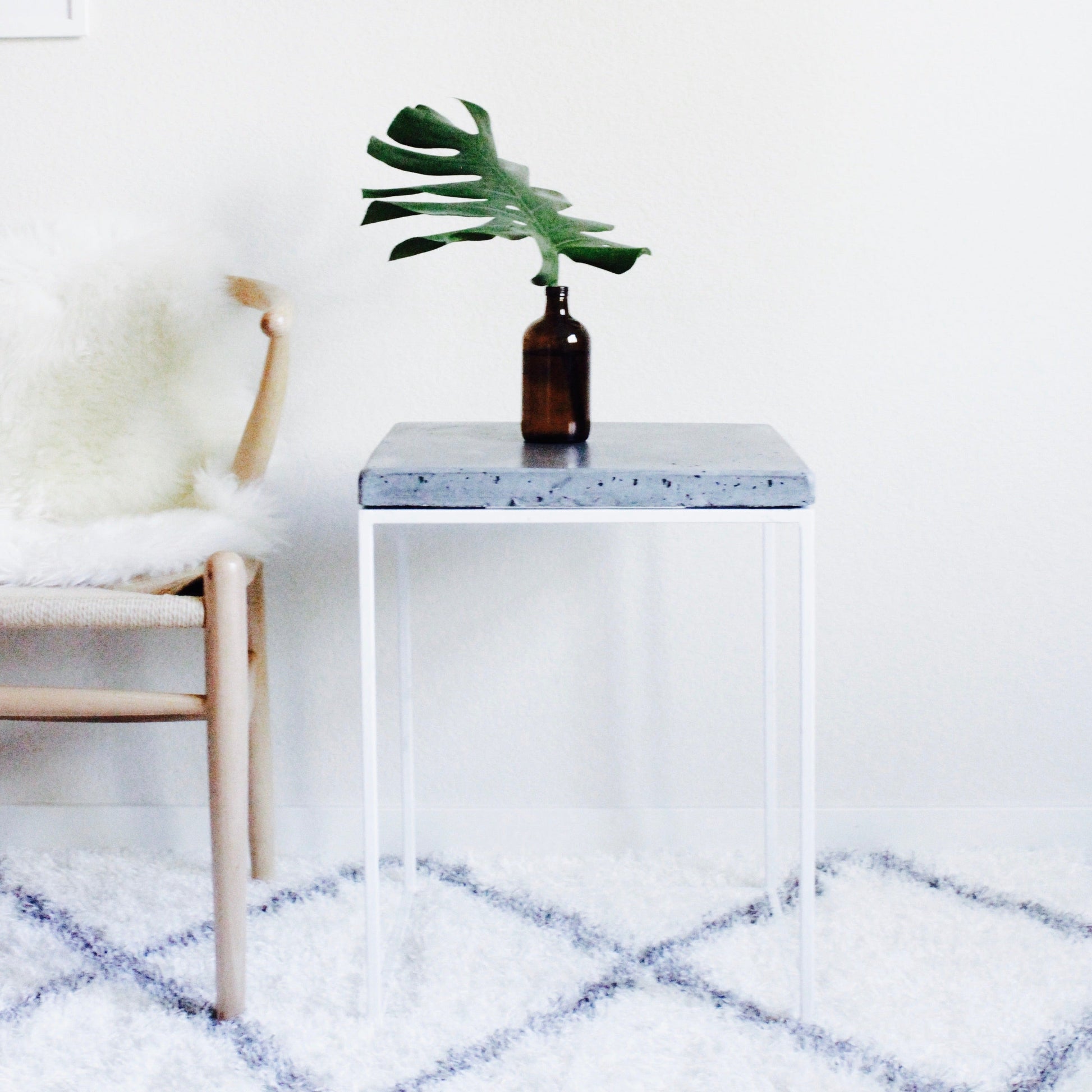 Classic, rectilinear tables that melds the lightness of minimalism with the heft of brutalism. Metal base topped with concrete. Available in two sizes.