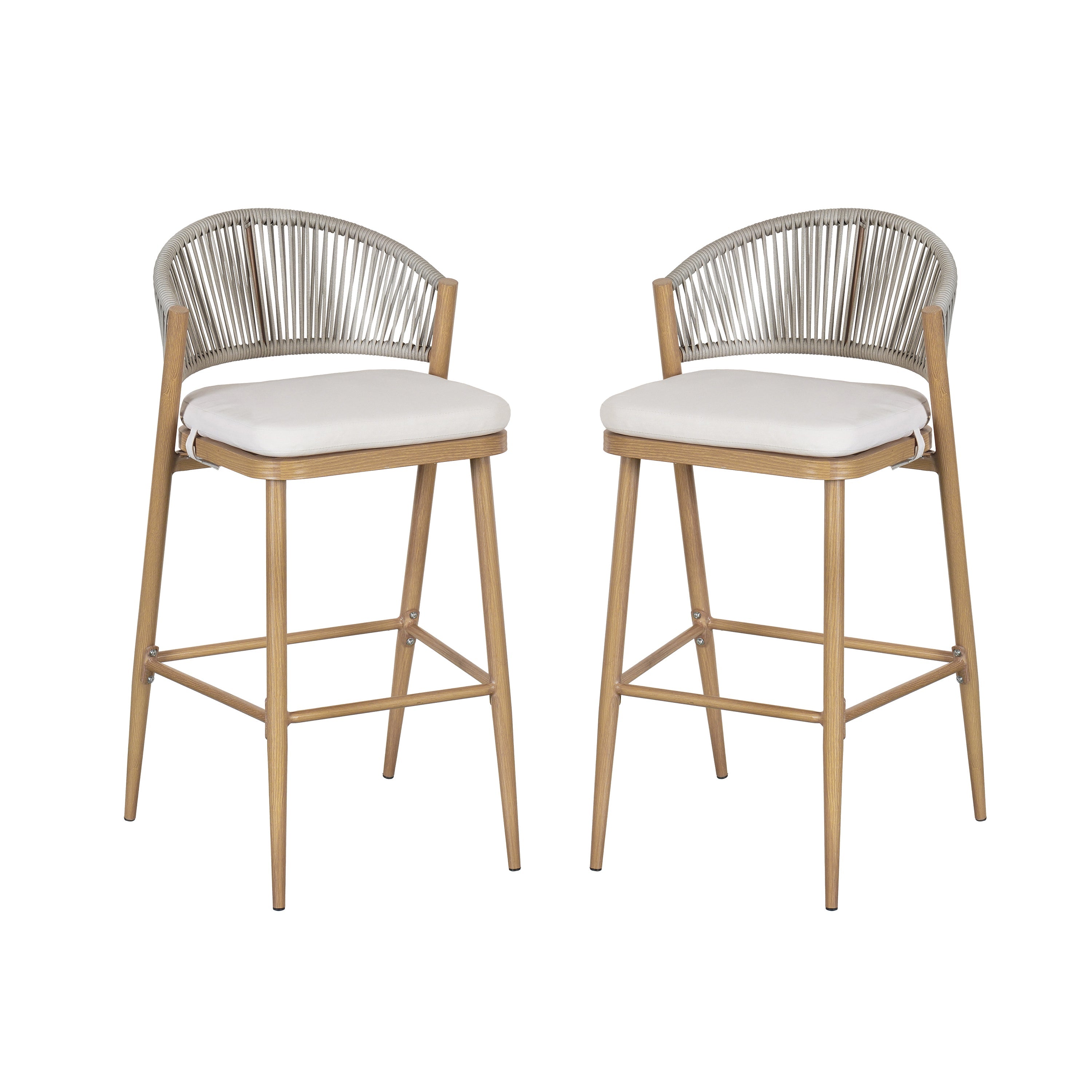 Outdoor Bar Height Aluminum Frame Counter Stools with Scallop-shaped Backrest & Water-resistant Cushions