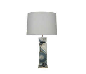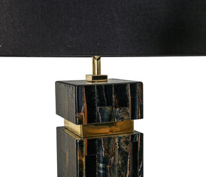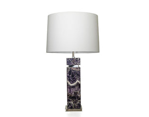 The exquisite Soho Table Lamp features premium gemstones inlayed with metal accents and complemented by a luxurious silk shade. Expertly crafted and available in a variety of colors, this unique lamp adds sophistication and elegance to any space.