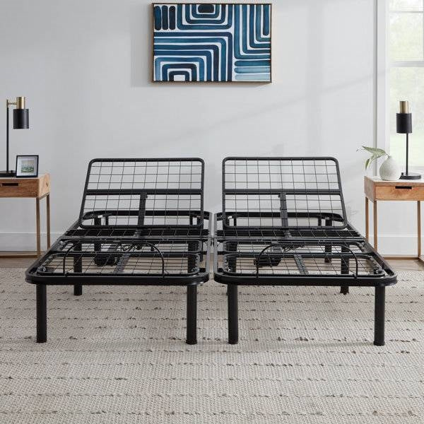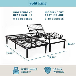 This Adjustable Full Electric Steel Bed Base with Remote in Split King provides a better way to sleep. It’s now easier than ever to read, watch TV, or relax in bed. You’ll love modifying your sleep experience with the head and foot-up positions controlled by a wired remote. This adjustable bed base fits well with most memory foam mattresses and bed frames, making any bed transition seamless. Added health benefits include reduced sleep apnea, acid reflux, and snoring. Comfort awaits. Mattress is NOT included.