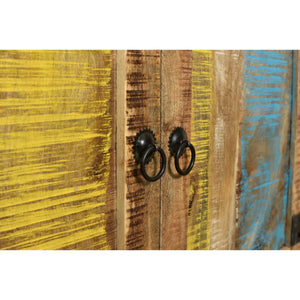The vibrant color schemes that run throughout your home, have been elegantly captured in the Suman rustic art 2 door sideboard. You'll love the harmony of exquisite vintage feel with a hint of modern touch. The rich range of color can be achieved with matching dining table, chairs or contrast the TV cabinet or with a solid bench. This unconventional yet functional statement piece will impress you forever.